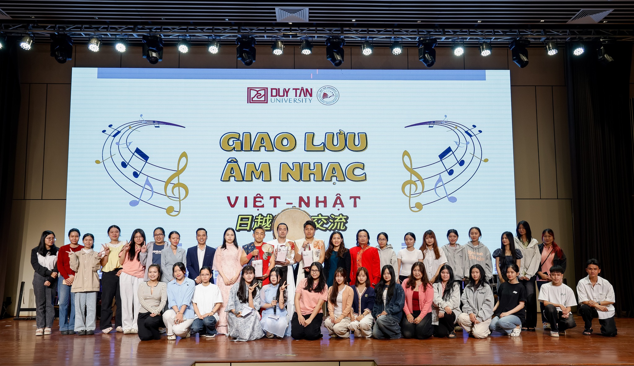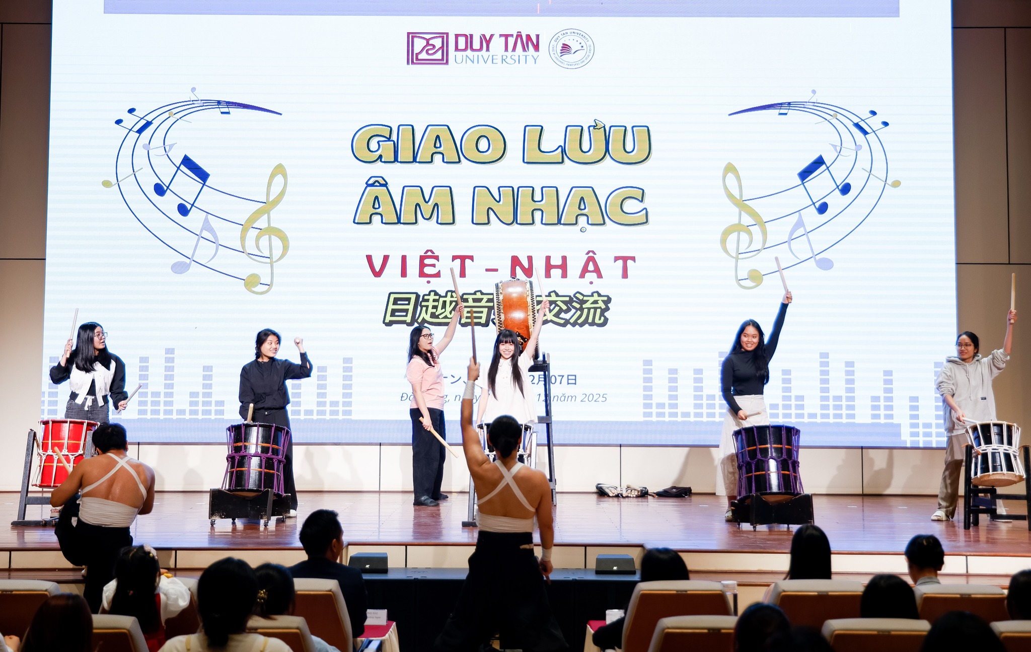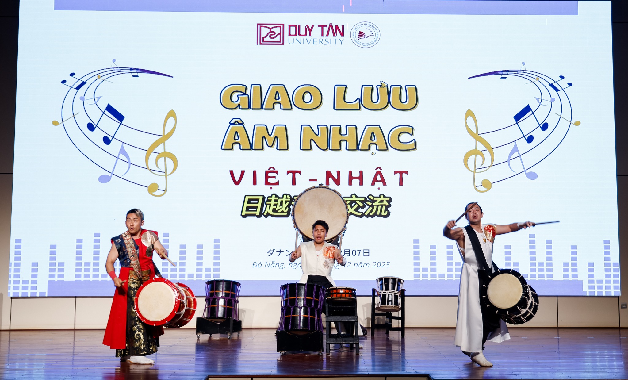 Ngày 07/12/2025, tại Hội trường Đại học Duy Tân, chương trình Giao lưu Âm nhạc Việt – Nhật đã diễn ra trong không khí sôi nổi và đầy cảm xúc với sự tham gia biểu diễn của Đoàn nghệ sĩ trống Takeru đến từ Nhật Bản. Sự kiện đã thu hút sự quan tâm của đông đảo giảng viên, sinh viên, đặc biệt là sinh viên Khoa Tiếng Nhật.