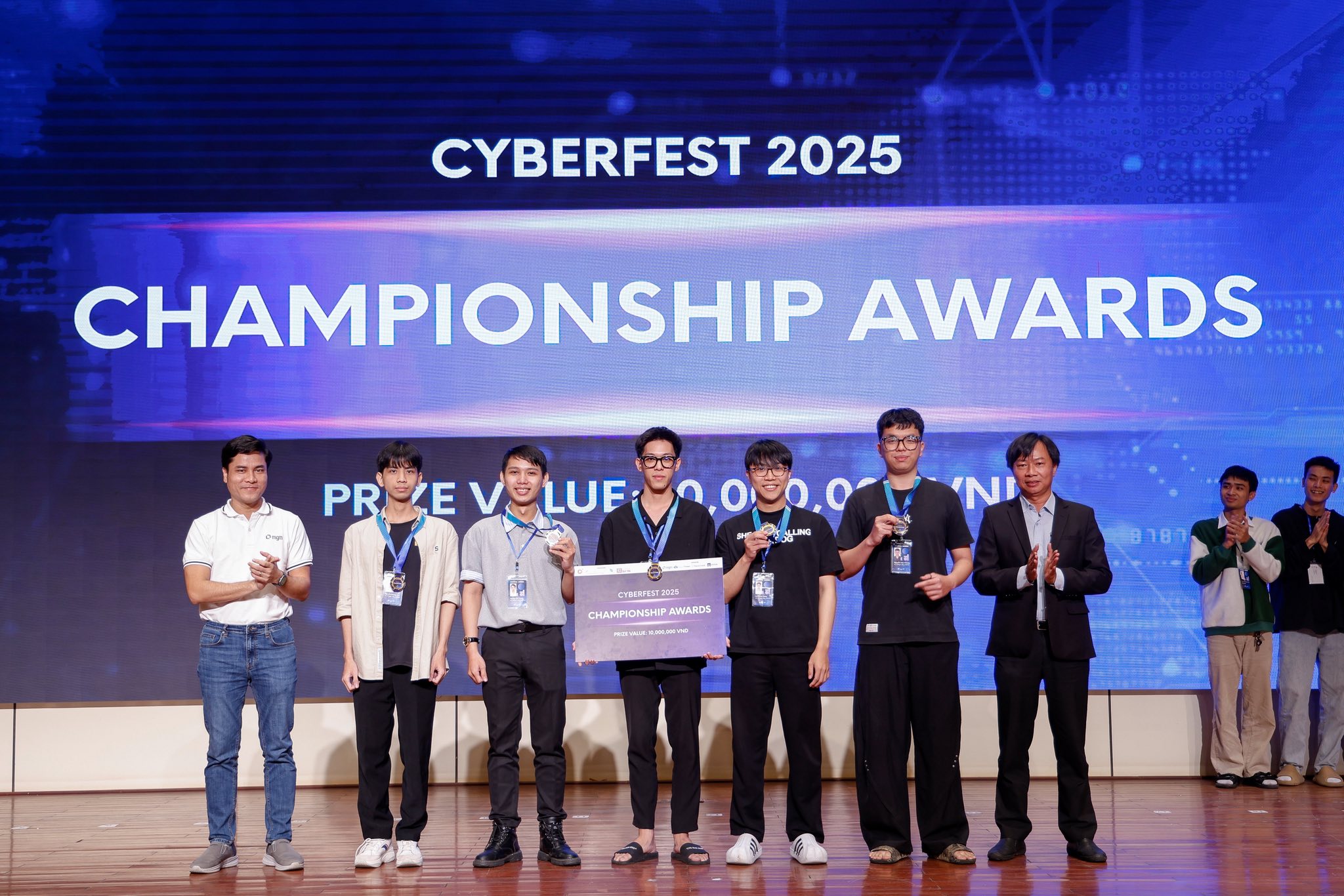 Trải qua 24 giờ thi đấu tập trung, ngôi vị Quán quân của CyberFest 2025 cùng nhiều giải thưởng đã được trao cho các đội tuyển xuất sắc nhất: